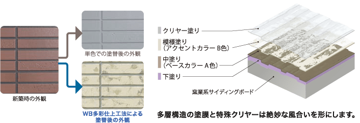 WB多彩仕上工法とは、スズカファイン株式会社が開発した外壁塗装リフォームです。